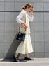 繊細なレースがかわいいマーメイドスカートのコーデ。 潔く上下白でまとめました。 引き締め役は、ベーシックで頼りになる黒小物を。 ●ショルダーバッグ2WAY(SRA-620) SALON de RUBAN シンプルな見た目ながら、パーツのゴールドがさり気なく効いて、大人っぽい印象。 中はファスナー付き含め3つの部屋に分かれており、いつもの荷物をすっきりまとめてくれます。 マグネット式の開閉がスムーズに「ぱくっ」と閉まってくれるのでストレスフリーなのも嬉しいポイント。 ショルダー紐を使うと、膨張しがちな白コーデにすっきりと縦長の印象をプラス。 手持ちにするとバッグのコンパクトさが際立ち、黒のローファーとともに白コーデに上品さを与えてくれます。 この日このバッグと訪れたのは、豆にとことんこだわっていらっしゃる、地元で人気のカフェ。 素敵なカップに入ったコーヒーに、その豆の生産地の説明が書かれたカードをいつも添えてくださるのが嬉しい。 目を引くような派手な仕掛けやアピールよりも、いい豆で丁寧に淹れたコーヒーに簡潔な手書きの説明を添え、人々がゆっくりとコーヒーを味わうことに重きを置いたカフェ。 ベーシックだけど機能的で、きらりとさり気ないアクセントがあるこのバッグがしっくり馴染む雰囲気なのでした。 ●レースマーメイドスカート ViS レースですがしっかりした厚みのりある生地なので安心感があります。 ●ニットベスト ap retro かなりの愛用品。 コーデを縦長にすっきりと整えてくれます。
