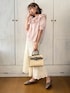 ラフすぎないナチュラル素材バッグ。 甘めの淡色コーデにもぴったりです。 ●スクエア2wayハンドバッグ SALON de RUBAN (サロン ド ルヴァン) 端正な長四角フォルム。 きちんと見えするうえ、長財布も余裕で入る収容力。 肩掛けにもなる2wayです。 フリルがかわいいブラウスは ems exciteさんの。 真ん中のリボン次第でオフショルにもなって便利。 PR