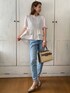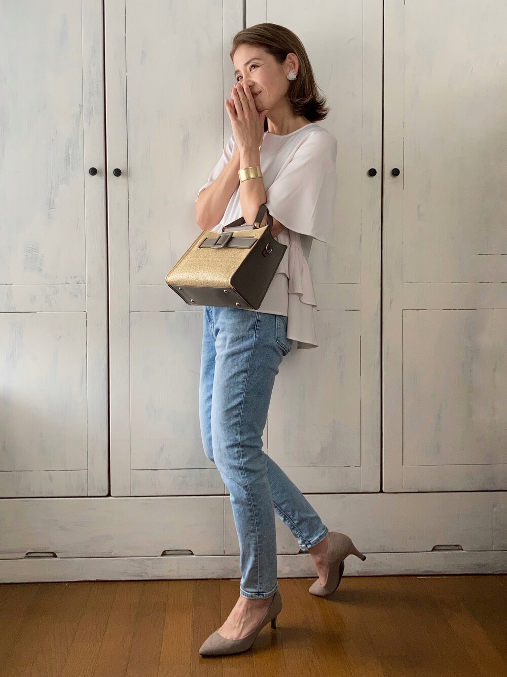 お仕事コーデに最適なセットアップの、トップスの着回しです。 ティアードの可愛さだけではなく、 滑らかな肌触りや、体に程よく寄り添うお仕立ての良さを感じ、 トップス単体としても優秀だなと思いました。 ●フレアー半袖ティアードブラウス&センタープレス入りテーパードパンツ 2点セットアップ WHITE JOOLA トップスのみ着用。近頃、トップスもブラックのものが発売されたようです。要チェックです。 ●スクエア2Wayハンドバッグ SALON de RUBAN 大人が持つのにちょうど良いカジュアルバッグ。 軽くて見た目以上の収納力があります。 ピアスはEMLさんの。 これを着けると華やぐし、肌トラブルも私の場合は無いので快適です。 PR
