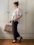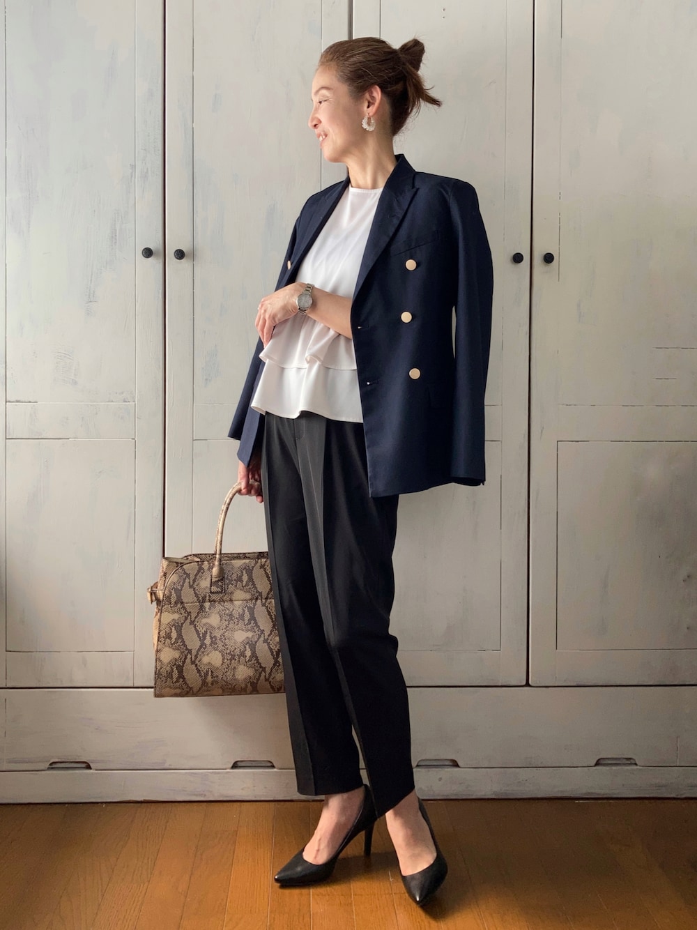 まゆみんのスーツセット「【洗濯機で洗える!・WEB限定】フレアー半袖ティアードブラウス&センタープレス入りテーパードパンツ2点セットアップ」を使ったコーディネート