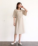 まゆみんのワンピース「【洗濯機で洗える&防シワ】強撚ポリストレッチ・配色フレアースリーブワンピース(ベルト付き)」を使ったコーディネート