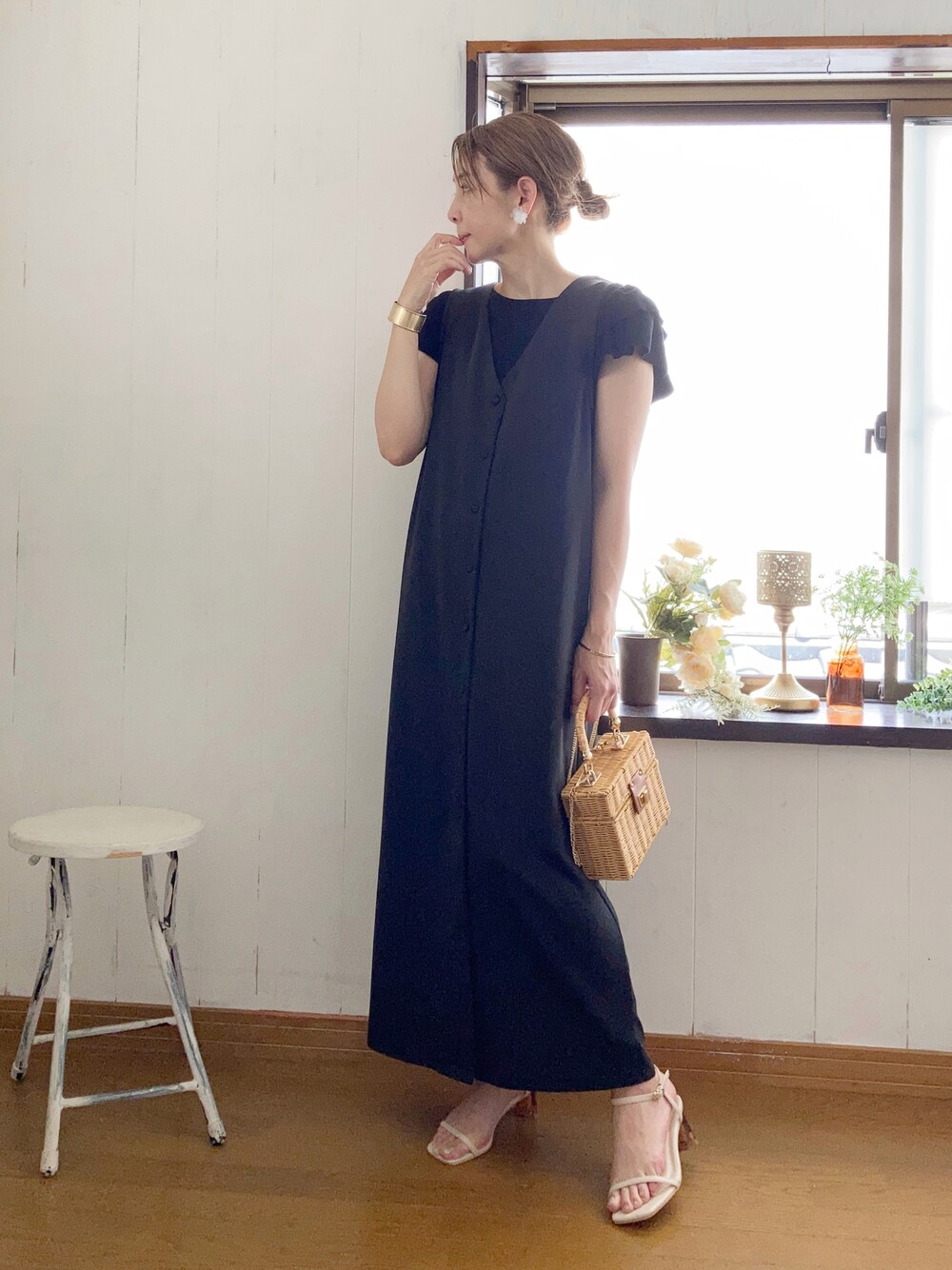 まゆみんのジャンパースカート「【apretro】Vネックロングジャンパースカート/ ベスト ジレ 前後 3WAY」を使ったコーディネート