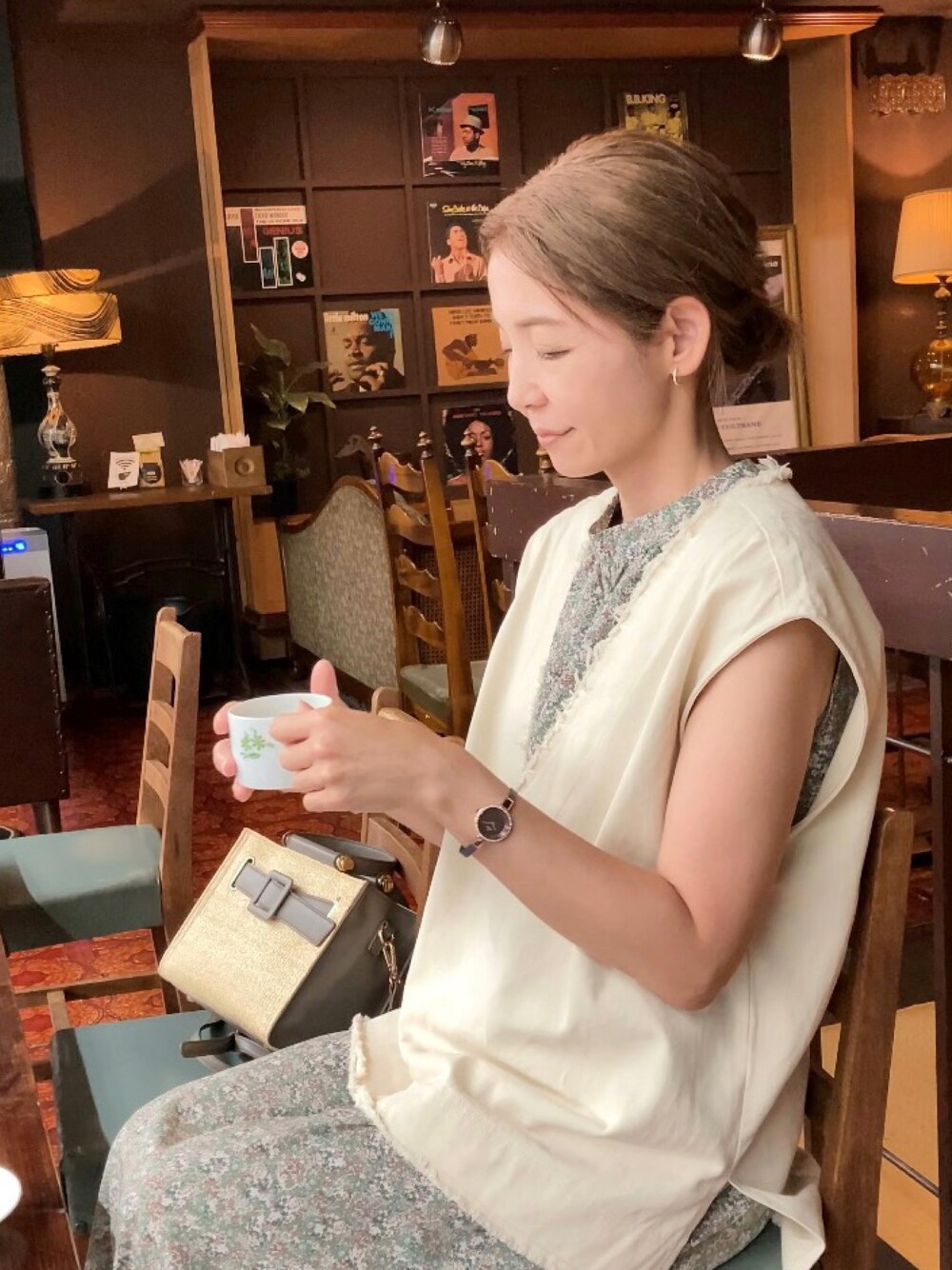 この日の仕事帰り、職場近くの商店街で夜市が開催されていました。 浴衣や甚平に身を包んだあらゆる世代の方々が集っており、かき氷やヨーヨーを手に楽しそう。 私は通りかかっただけでしたが、その光景に以前の暮らしが一瞬戻ったように感じました。 ●フリンジvネックベスト ap retro もしゃもしゃと切りっぱなしの首回りと裾がかわいいベスト。 布なので爽やかに着られます。 さり気なく二の腕カバーしてくれてありがたし。 ふと目に入る度に嬉しくなってしまう腕時計は、 デンマーク生まれの@obakujp の人気シリーズ SIV GLIMT - WALNUT スワロフスキークリスタルがくるっと一周施されていて、さり気なくきらきら。 こっくりと深めのブラウンカラーは、ナチュラルテイストからレディな装いまで、幅広いコーデに馴染みます。 メッシュベルトの素材が最高品質の316Lサージカルステンレススチールなのも嬉しい。 毎日暑いけど、この腕時計と一緒なら快適だし頑張ろうと思える! 素敵な相棒に出会えました.。.:*☆ お得なクーポン発行していただきました。 他にも素敵な腕時計がたくさん。 是非公式サイト覗いてみてくださいねー! 2022/10/30までのご購入で10%OFF! クーポンコード【 yumin 】