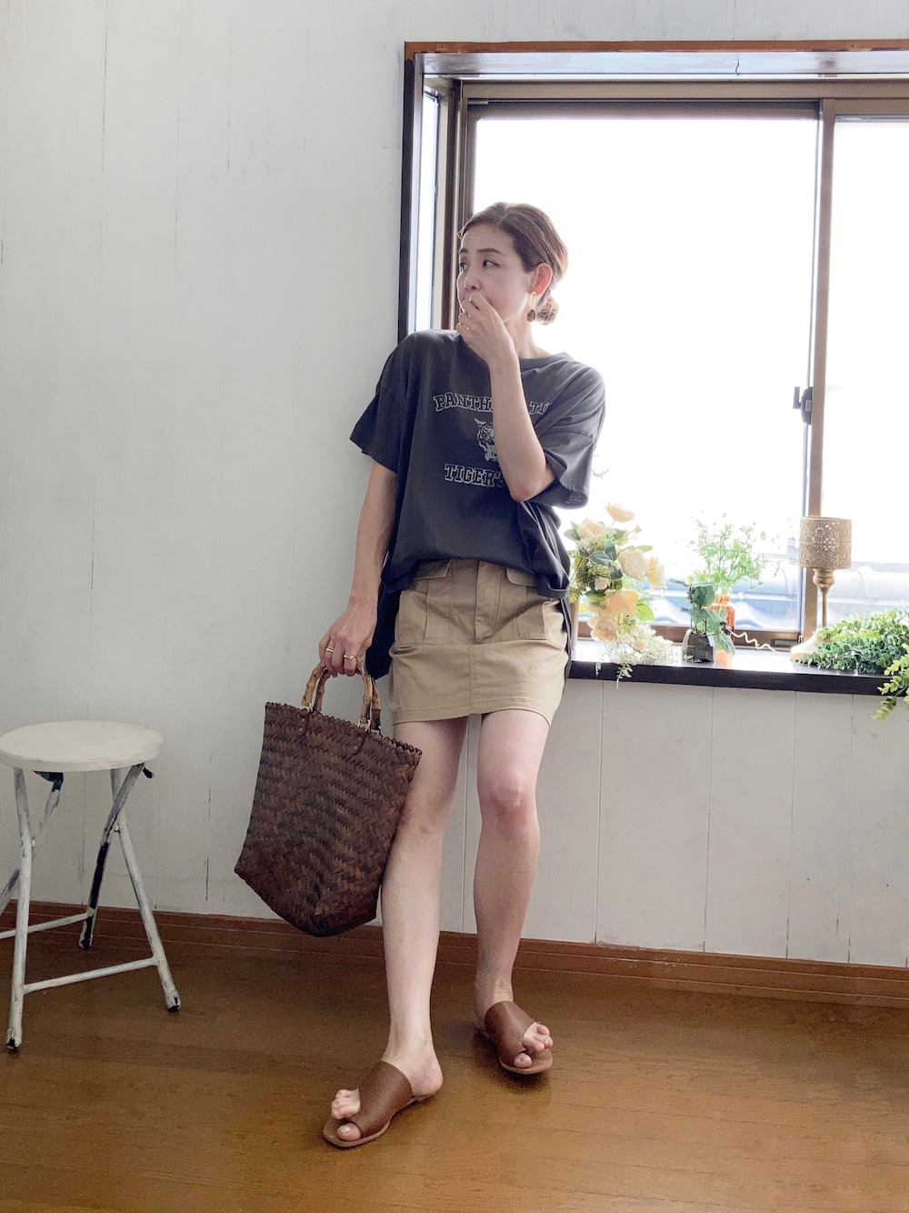 家にいる日ののリラックスコーデ。 ● ヴィンテージ風プリントTシャツ COTORICA 滑らかで着心地の良い生地。 洗濯後もくちゃくちゃにならずキレイに乾いてくれるので嬉しい。。 ゆるっとしたシルエットがかわいい。 本日クーポン出てます。 ミニスカはもう穿かないかな?と思いかなり断捨離したのだけれども、 長年愛用しているZARAのこのスカートは手放せない。 ヘルシーなミニスカコーデに重宝します✨
