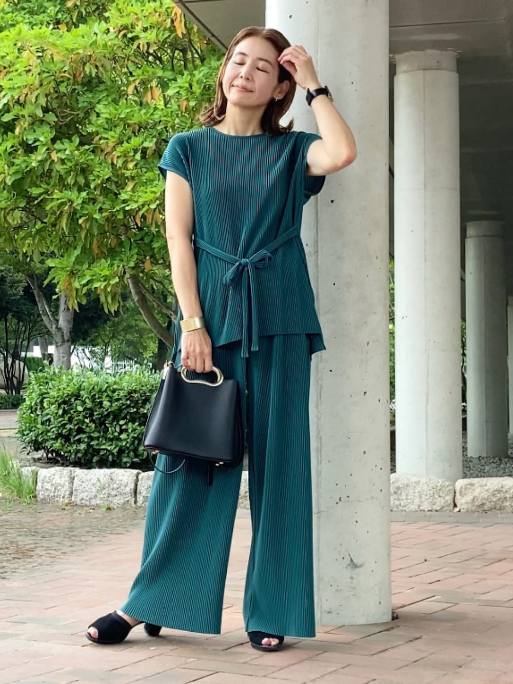 まゆみんのパンツ「煌めきプリーツの大人見えセットアップ」を使ったコーディネート