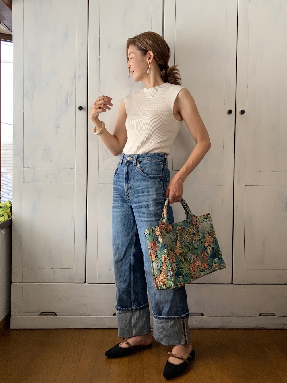 夏のハイネックってかわいい。 ● ハイネックノースリニット ap retro ハイネック&すっきりノースリーブの組み合わせが大人っぽい。 かなり滑らかで伸びの良い編み地で、 ハイネックなのに首元違和感なし。 色違いで欲しくなるやつです。 早々に購入したのに もりもり居る動物さんたちがかわいくて 勿体無くて使えなかったバッグを おもむろに持ってみます(о´∀`о) #pr