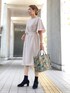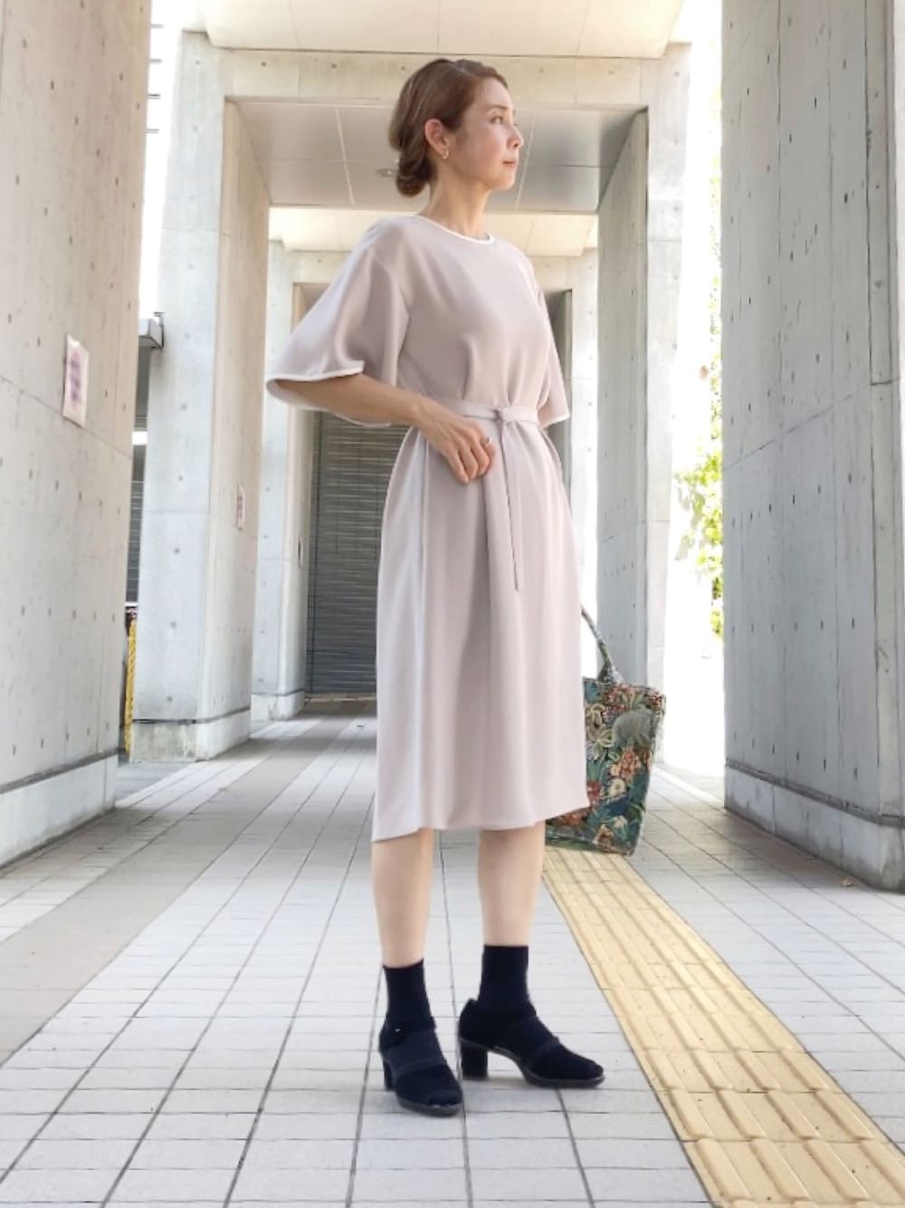 まゆみんのワンピース「【洗濯機で洗える&防シワ】強撚ポリストレッチ・配色フレアースリーブワンピース(ベルト付き)」を使ったコーディネート
