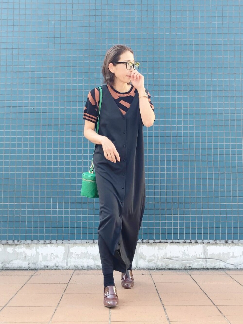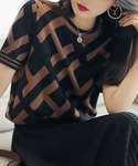 お仕事コーデ。 ● 柄半袖トップス deux amour 大人っぽく秋っぽいトップス♡ 幾何学的な雰囲気が今のムードにぴったりです✨ 本日千円クーポン出ています💕 ●Vネックロングジャンパースカート ap retro