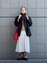 みなさま、温かくしてますかー? 心も体も冷えるとロクなことないので、どうかぬくぬくでお過ごしくださいね。 ●ノーカラーダイヤキルティングブルゾン マフラー付 ap retro 軽くて温かいアウター。絶対デイリーに活躍するやつです。 前を全部閉めるとシンプルなボックスシルエットに、 開けて着ると裾にかけて広がって可愛いシルエットに。 お揃いのマフラー付きなので、ごちゃつきがちな冬の重ね着もすっきりシンプルにまとまりますよ。 ●レオパードサイドラインパンツ mi via loca 主役級インパクトのあるライン入りレオパード柄パンツ。 今回はロングワンピの下に重ねて、チラ見えに。 実はお仕事コーデなのですが、レオパのお咎めなしでした。 柔らかくて軽くて着心地良いので、またお仕事コーデに投入しようと思います! #pr
