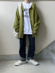まゆみんのノーカラーコート「ノーカラーVネックミディコート」を使ったコーディネート