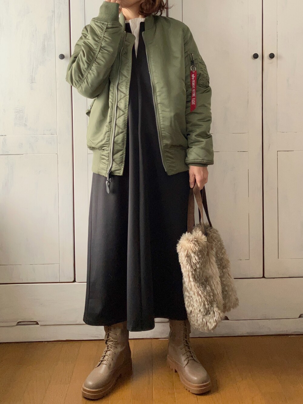 ● MA-1タイト フライトジャケット(日本スペック)リバーシブル Alpha Industries 本格派のMA-1は暖かいです✨ 隙間風入ってきにくいつくりも素晴らしい。 ワンピとインナーはアプレトロさん。 PR