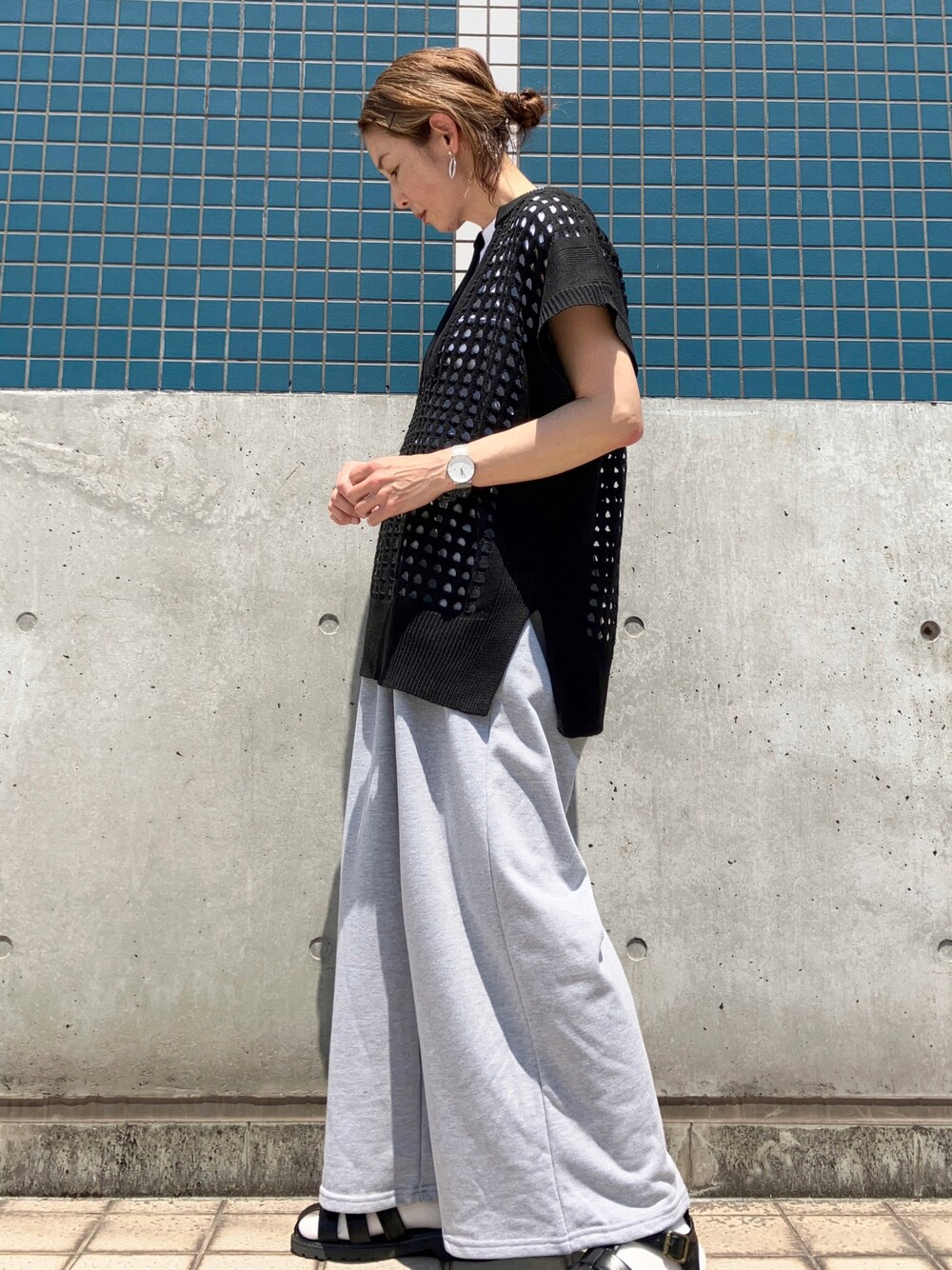 まゆみんのベスト「ディープVネック 透かしニット ベスト」を使ったコーディネート