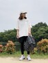 まゆみんのTシャツ/カットソー「ビッグシルエットデザイン ロゴプリントTEE」を使ったコーディネート