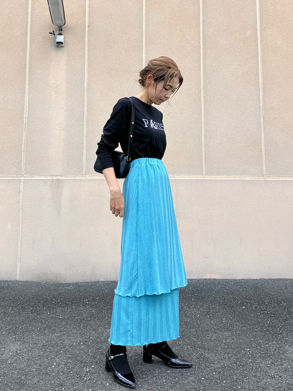 ちょーっと夏服に飽きた時は 大人可愛いロンTを✨ ●PARIS T @deuxamour_official 胸元にパリって書いてるTシャツ Aのところだけ パールがしかも不揃いな大きさのがついていて めちゃくちゃ可愛い😍 ゆるすぎないサイズ感だから ナローなスカートともバランスよくなじみます その他アイテム ●スカート @mivialoca ●バッグ @goinluck.jp