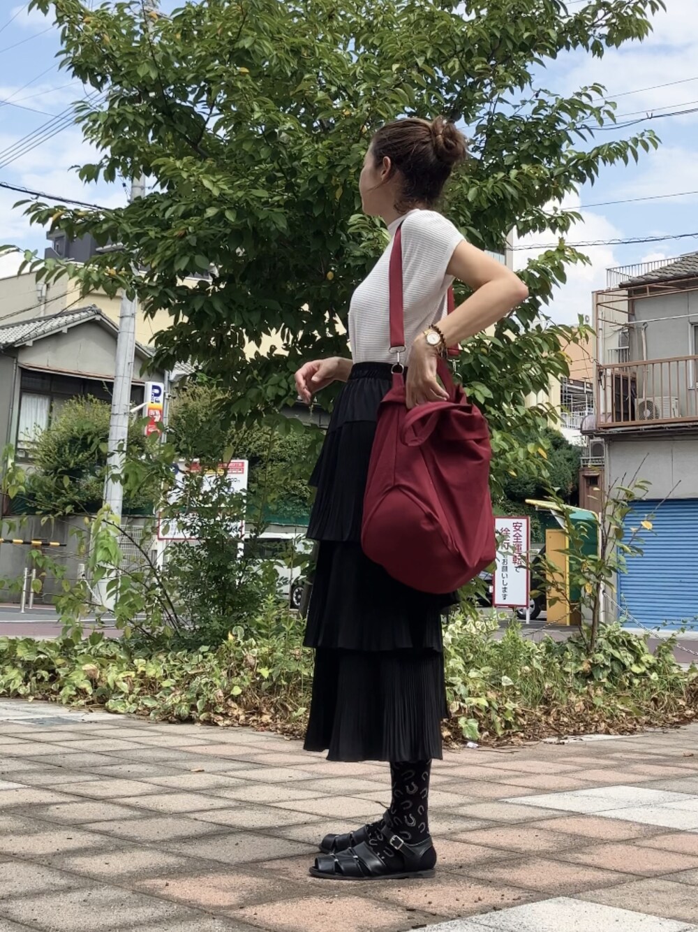 たくさんのフリル&アシンメトリー✨ この可愛いすぎるスカート 休日だけでは勿体ない! ●ティアードスカート @meirire_official お仕事コーデに取り入れてみました☺️ 白いニットのトップスと ロングソックス×黒サンダルの組み合わせ シンプルさを意識することで スカートのヒトクセが 職場と調和するほんのりポイントに変身✨ ウエストゴムで動きやすいし 座りジワ全く気にならないし めっちゃ快適なお仕事デーでございました💕 行き帰りは赤いバッグで テンション上げてスタスタと🚶 トップス @deuxamour_official 靴下 @sockwell_jp サンダル @forksy_official バッグ @florge_by_florist