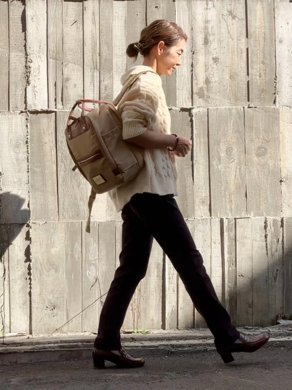 お仕事コーデ 襟がかわいいあのニットと こっくりパープルのパンツ 花柄くつした ニット @uleula.official パンツ @ariki_jp 着圧ソックス @sockwell_jp 鞄 @gastonluga #pr#uleuls#ウルア#襟付きニット#ariki#日本製パンツ#sockwell#着圧ソックス