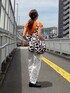 ヒョウとオレンジ 荷物が多いわたくし 脇のスナップは簡単に開いて すぐに大容量バッグになりますよ ●【A4収納可・軽量】レオパード柄カジュアルスクエアトートバッグ @florge_by_florist トップス @zara パンツ @gu_global 靴 @neutral_atelierokada PR