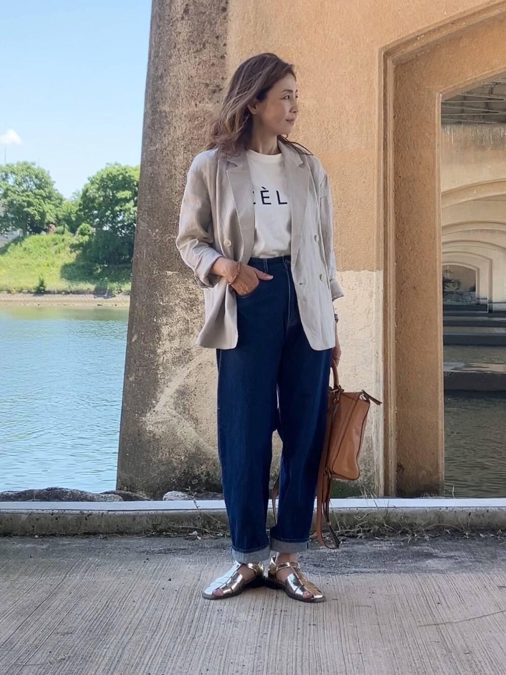 先週きらきら坂を歩きまくった @noisemaker_jpn さんの メタリックグルカサンダル✨ 今回はデニムに合わせてみました かわゆいー🙌 つま先の露出控えめで、かかとも覆ってくれてるから ソワソワせずに素足で履けます🤭 本日ZOZOTOWNでクーポン出てますよ! リネンジャケット @mercuryduo_com Tシャツ @wego_zozo 鞄 @fossil