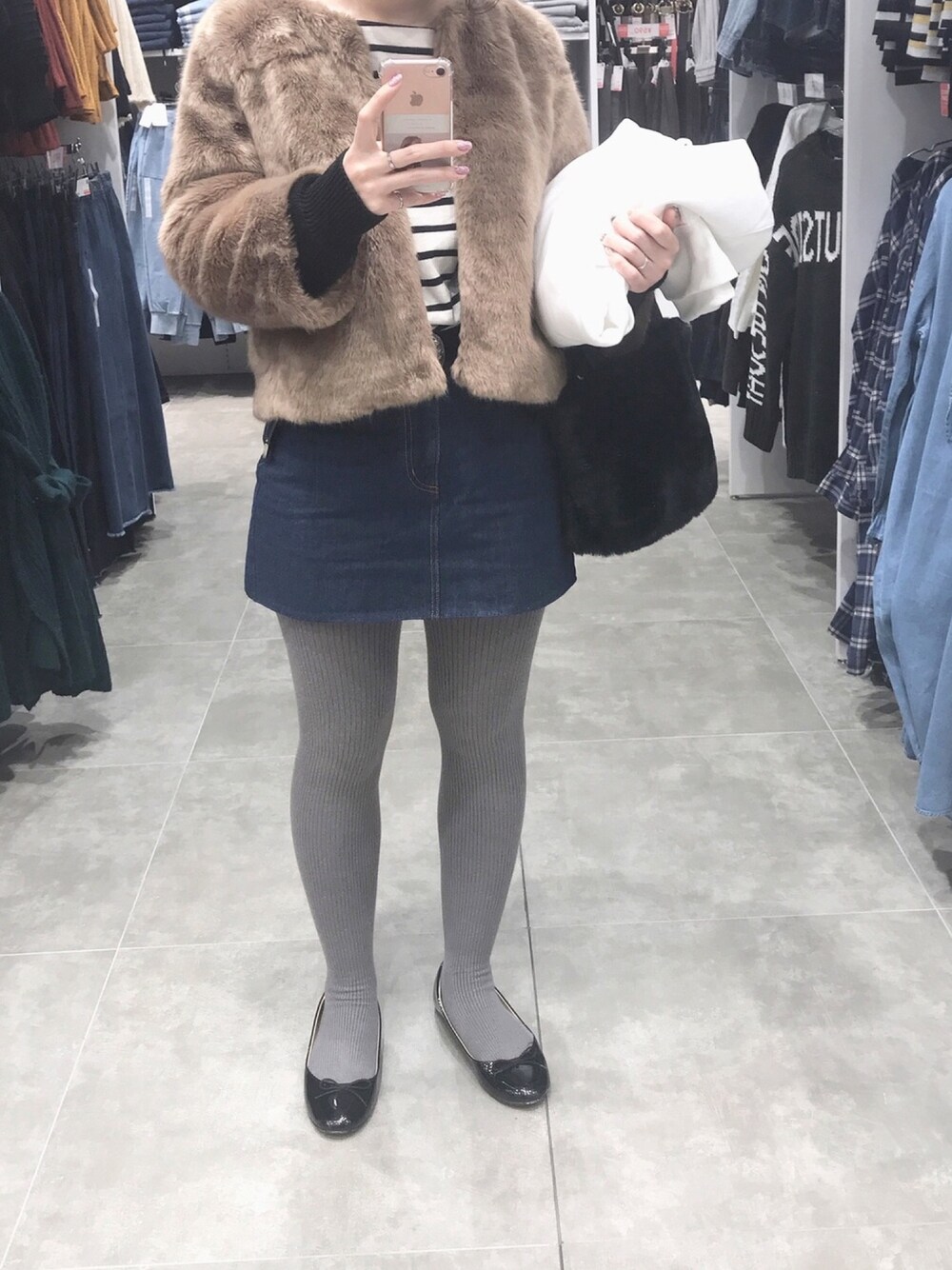 mayu okumuraのブルゾン「エコファー ショートノーカラー ボアジャケット」を使ったコーディネート