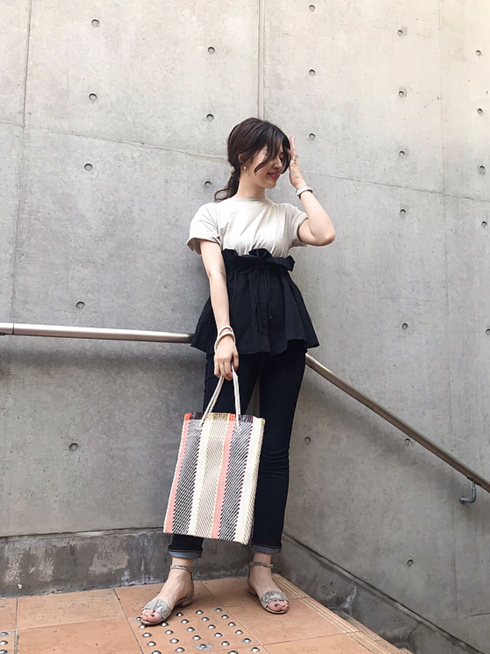 mayu okumuraのTシャツ/カットソー「ドッキングビスチェカットソー」を使ったコーディネート