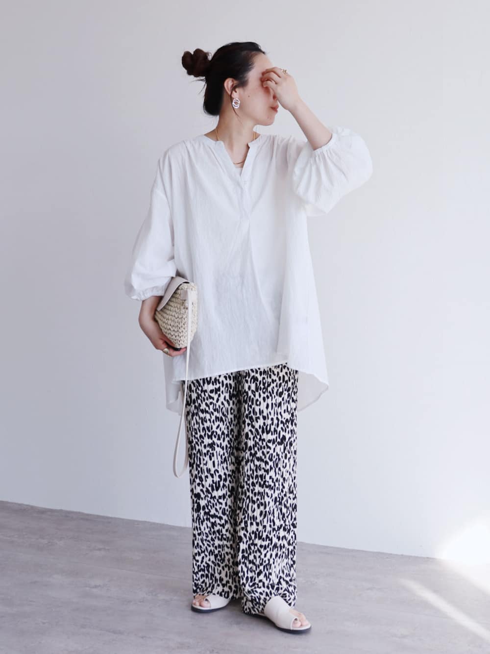 ホワイト系のその他パンツを着用したレディースの夏コーディネートの1枚目の写真