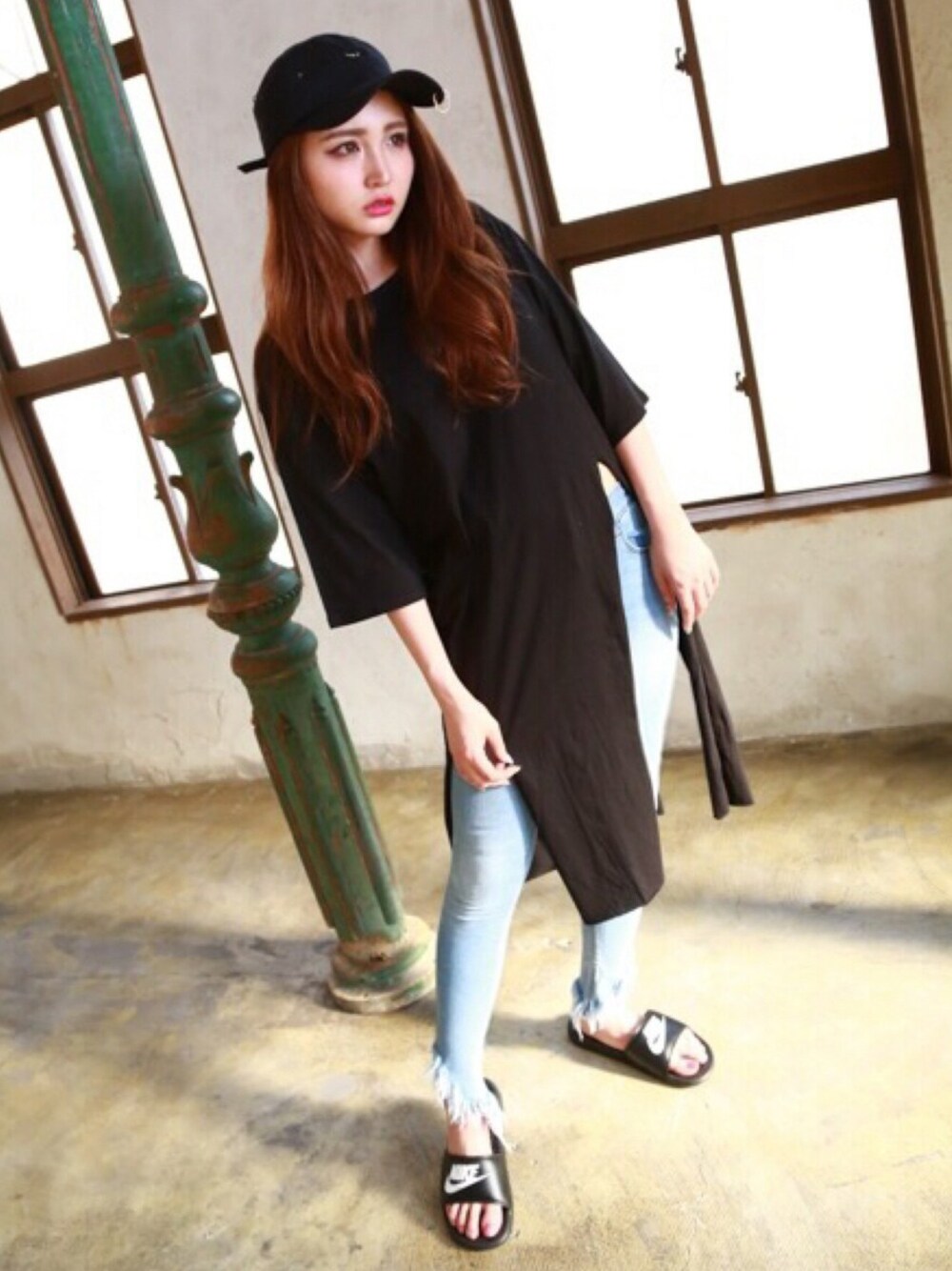 ロングスリット七部T ロング丈とスリットの入り方が 絶妙で可愛いTシャツです♫ 男の子がきてもお洒落です 〜color〜 black.white 〜model〜 black.164cm white.181cm 〜size〜 free 肩幅47.5 身幅51着丈101 フリンジデニム あたりの入り方が脚を綺麗に見せてくれるデニムです。 フリンジが今年っぽく細身ですがストレッチもきいています。 〜color〜 r-blue 〜model〜 164cm 〜size〜 free ウエスト32(68)丈83股下64 こちらからとべます http://unkown.black/