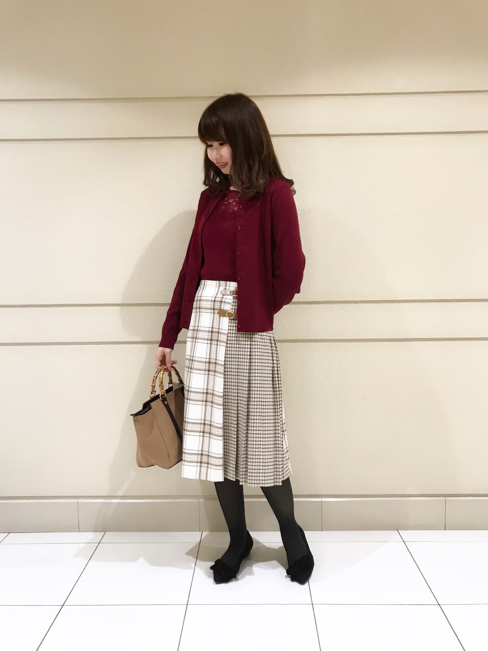 オリジナルのチェック柄と、サイドだけプリーツになったシルエットが珍しく大好きなスカートです💓 新作のツインと合わせました☺️