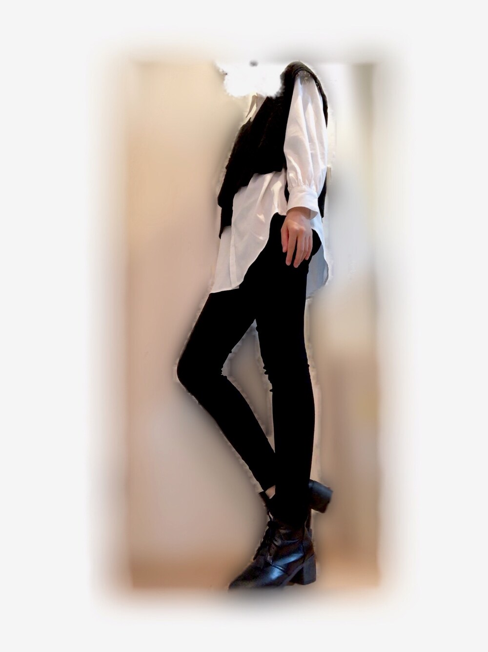 春にピッタリの服装です。ジーンズでも良きだと思います。ブーツとスキニーで脚長効果に( ◜ω◝ ) 桜見に行きたい🌸
