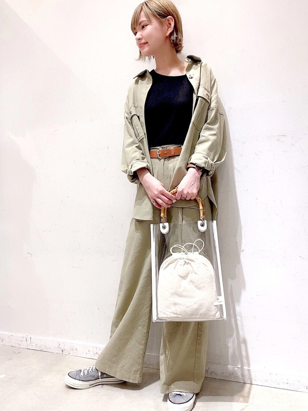まゆたんぺのトートバッグ「WEGO/【2点セット】バンブーハンドルクリアトートバッグ」を使ったコーディネート