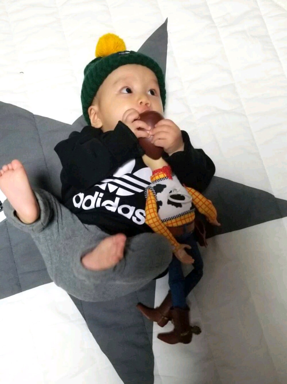 ウッディの頭をカミカミしてます👶