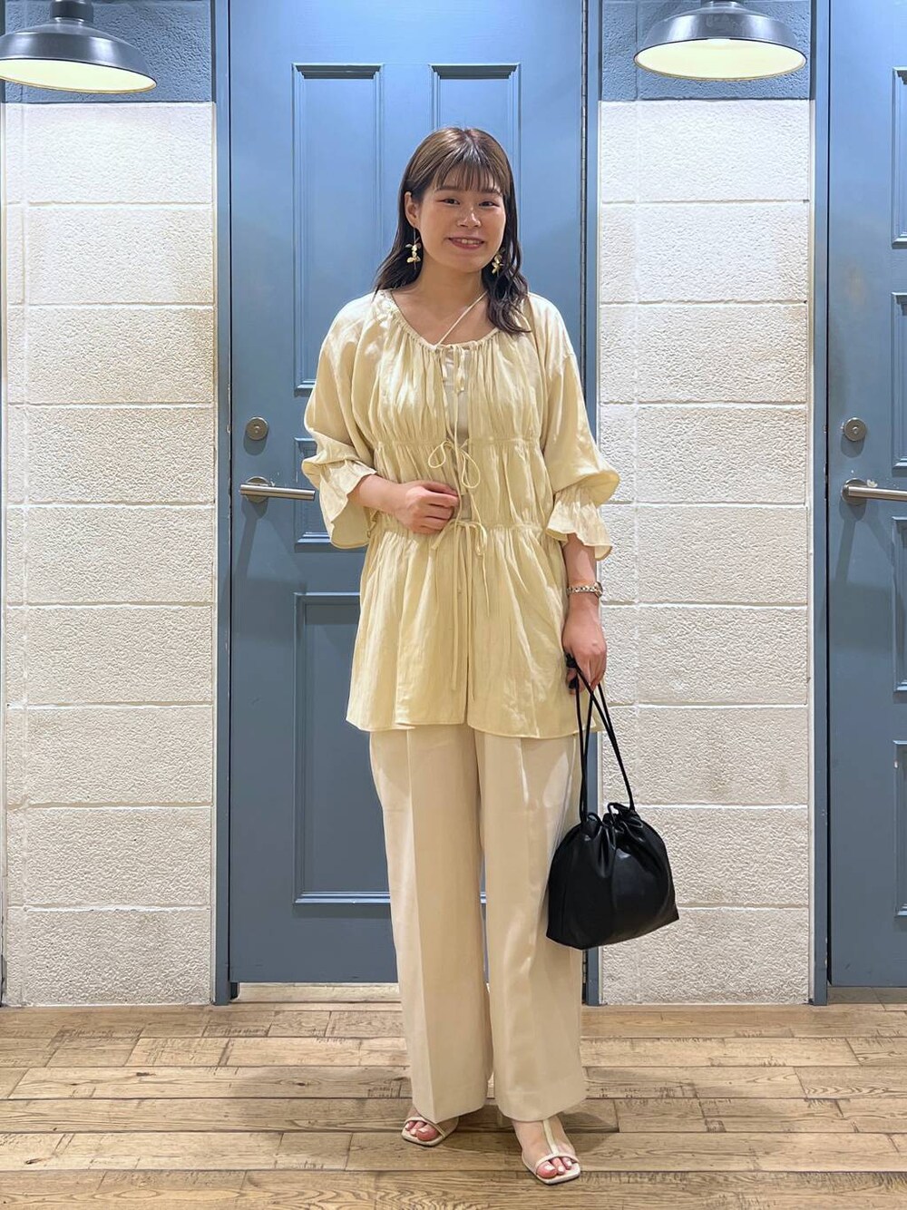 ご覧頂きありがとうございます♡ 【トップス】 前後2wayで着ていただける仕様になっています。シャーリング部分はゴムになっており伸縮性が付いていますので楽に着て頂けます!インナーはキャミソールやタートルネック、ロンTなど合わせて頂くのがおすすめです。 またキャミワンピースなどに羽織って頂くのも◎ 【パンツ】 ワイドなシルエットですが落ち感がありスッキリ着ていただけます。トップスはカーディガンやTシャツ、ブラウスなどジャンル問わず合わせて頂けます。 159cmでフラットなシューズだと少し長めな丈感でした! Instagram→【】 是非、フォローお待ちしております♡