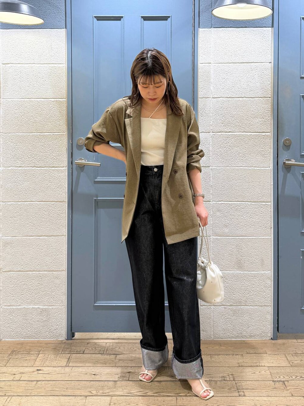 ご覧頂きありがとうございます🎀 【ジャケット】 サラッとしたシワになりにくいお素材になるのでお洗濯も手軽にして頂けます。 落ち感があるので肩周りもスッキリ着て頂けますよ◎ 【デニム】 広がりすぎないワイドなシルエットでスッキリ穿いて頂けます。裾をお好みの長さに折り返すデザインなので小柄な方でも安心して穿いて頂けます。