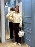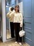 ご覧頂きありがとうございます🎀 [ニット] もっちりとした肉厚のお素材なので風も通しにくく暖かいです。首元にジッパーがついており1番上まで上げて頂くとハイネックとしても着ていただけます◎ジッパーを下げて着る場合、ロンTやシアートップス合わせや、キャミワンピースの上から着て頂くのもオススメです✨ [パンツ] 全体的に伸縮性があり、ウエストも総ゴムなので楽ちんです◎ニットのお素材ですがセンタープレスされているのでラフすぎず綺麗めなコーデからカジュアルなコーデもジャンル問わず合わせて頂けます◎ Instagram→[] カフェや私服なども投稿しています♡ 是非参考になれば嬉しいです🪽