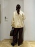 ご覧頂きありがとうございます🪽 [トップス] レイヤード風にドッキングされているので一枚でおしゃれに着映えします✨肉厚なしっかりとした生地感なので透け感も気になりにくく着やすいです!ボトムスはデニムやスラックス、マーメイドスカートなど合わせ方次第で綺麗めでもカジュアルでも着ていただけます◎ [パンツ] ワイドなシルエットですがサラッとしており落ち感があるのでスッキリ着ていただけます。タックも入っているので広がりにくいです◎159cm、Mサイズ着用でフラットなシューズでも引きずらず穿けました✨全周ゴムなのでめちゃくちゃ楽です! Instagram→[] 是非参考になれば嬉しいです♡