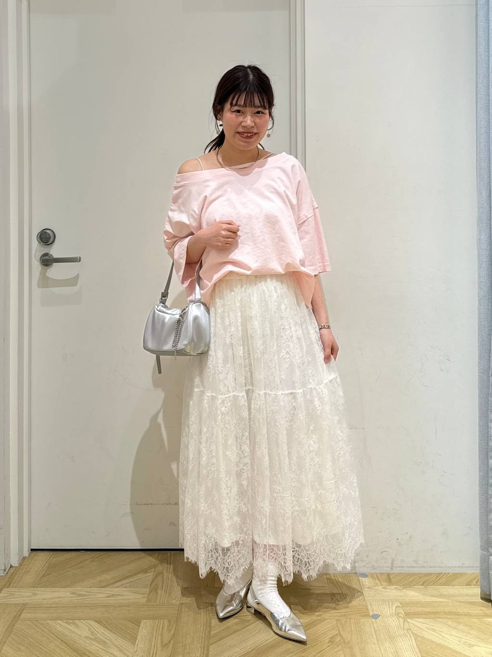 春のピンクコーデ🩷 レースのスカートとTシャツ合わせで 甘くなりすぎないようにしました✨ 参考になれば嬉しいです🪽 Instagram→[]