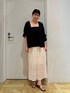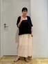大人気なノルマンディーのシャツと キャミビスチェを使ったコーデです🪽 トップスがブラックなのでレースお素材のホワイトのスカートと合わせて涼しげなコーデに✨ 夏でも着て頂きやすいモノトーンコーデです! 是非参考になれば嬉しいです🎀 Instagram→[]