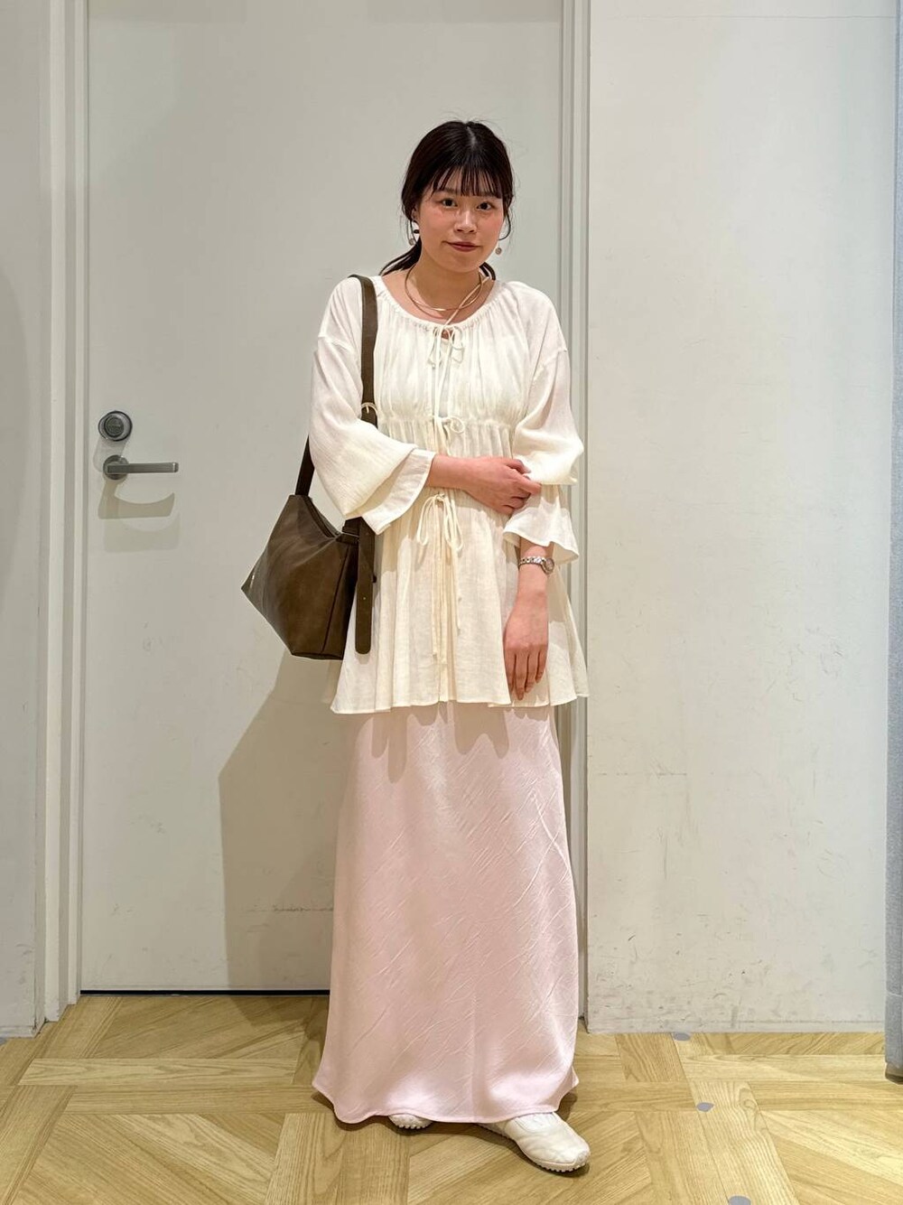 春夏のピンクコーデです🎀 綺麗めすぎないようにスニーカーで 合わせたのがポイントです✨ Instagram→[] 是非参考になれば嬉しいです🪽