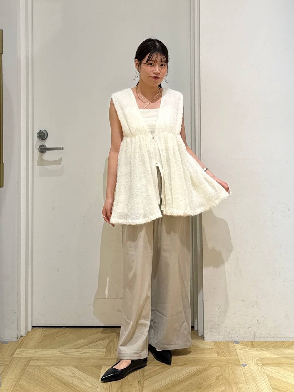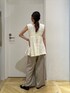 秋の淡色コーデ🍂 フェザーのトップスは薄めの生地なのでなので 秋先取りにオススメです✨ 参考になれば嬉しいです🪡 Instagram→[]