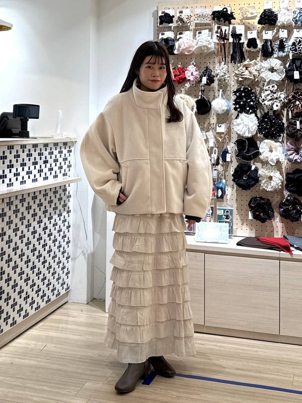 まゆゆ(LOWRYS FARM ゲートウォーク)のブルゾン「ウーリーテックスタンドブルゾン 494131」を使ったコーディネート
