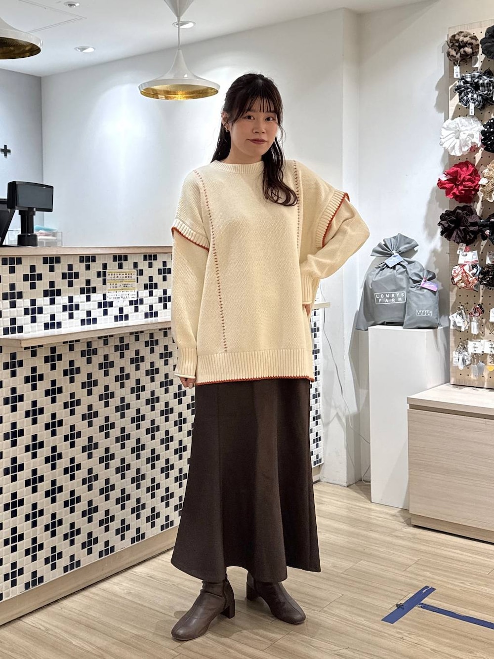 まゆゆ(LOWRYS FARM ゲートウォーク)のニット/セーター「2WAYハイショクステッチプルオーバー 452238」を使ったコーディネート