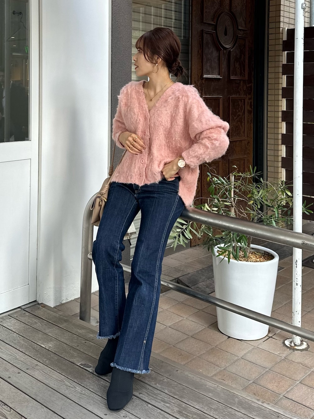 シャギーカーディガンコーデ