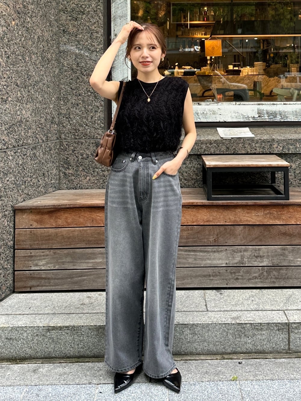 mayu(Thevon.)のデニムパンツ「【2サイズ展開/身長別サイズ比較動画あり】ハイウエストワイドデニム」を使ったコーディネート