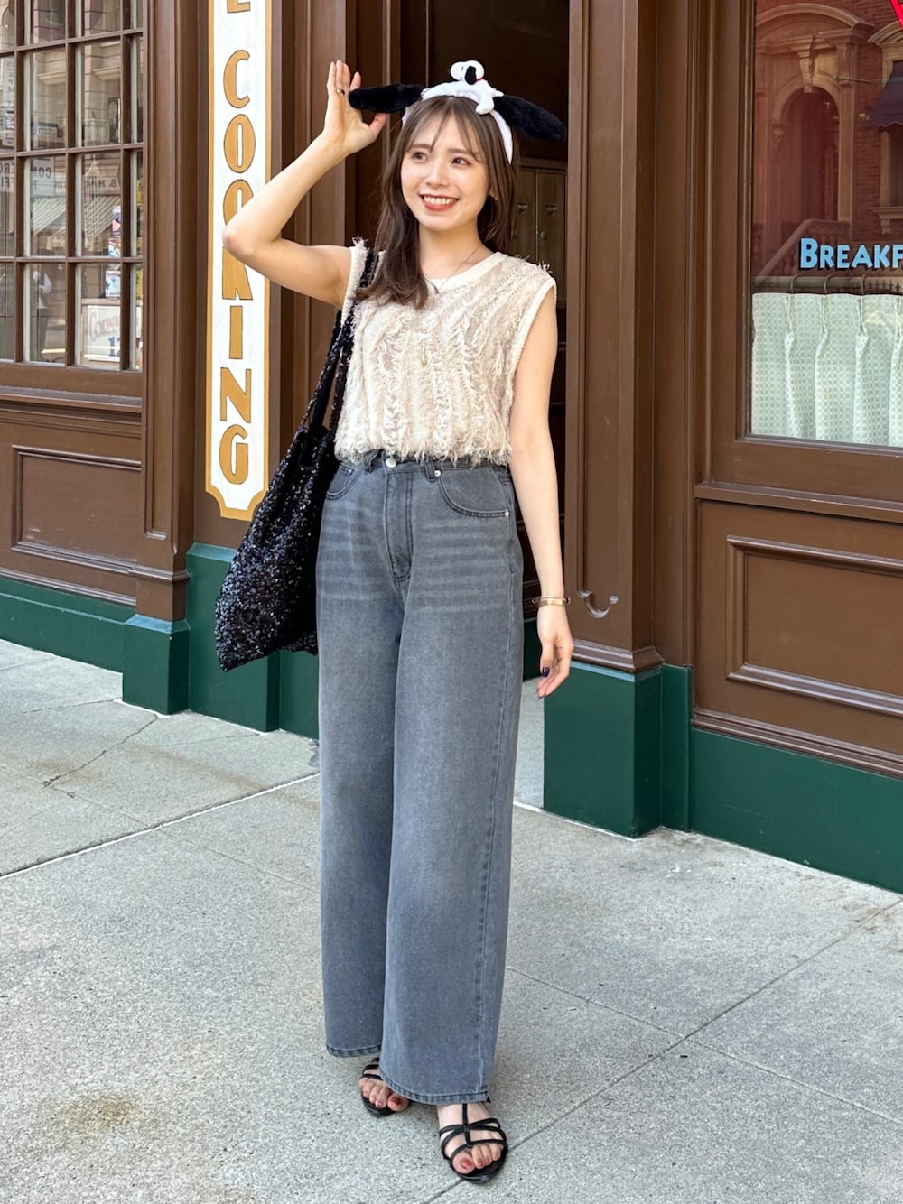 mayu(Thevon.)のデニムパンツ「【2サイズ展開/身長別サイズ比較動画あり】ハイウエストワイドデニム」を使ったコーディネート