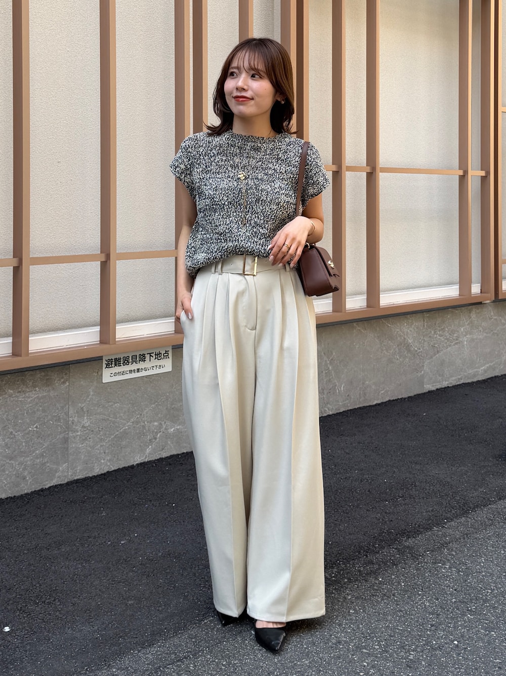 mayu(Thevon.)のスラックス「ベルト付きタックワイドスラックス」を使ったコーディネート