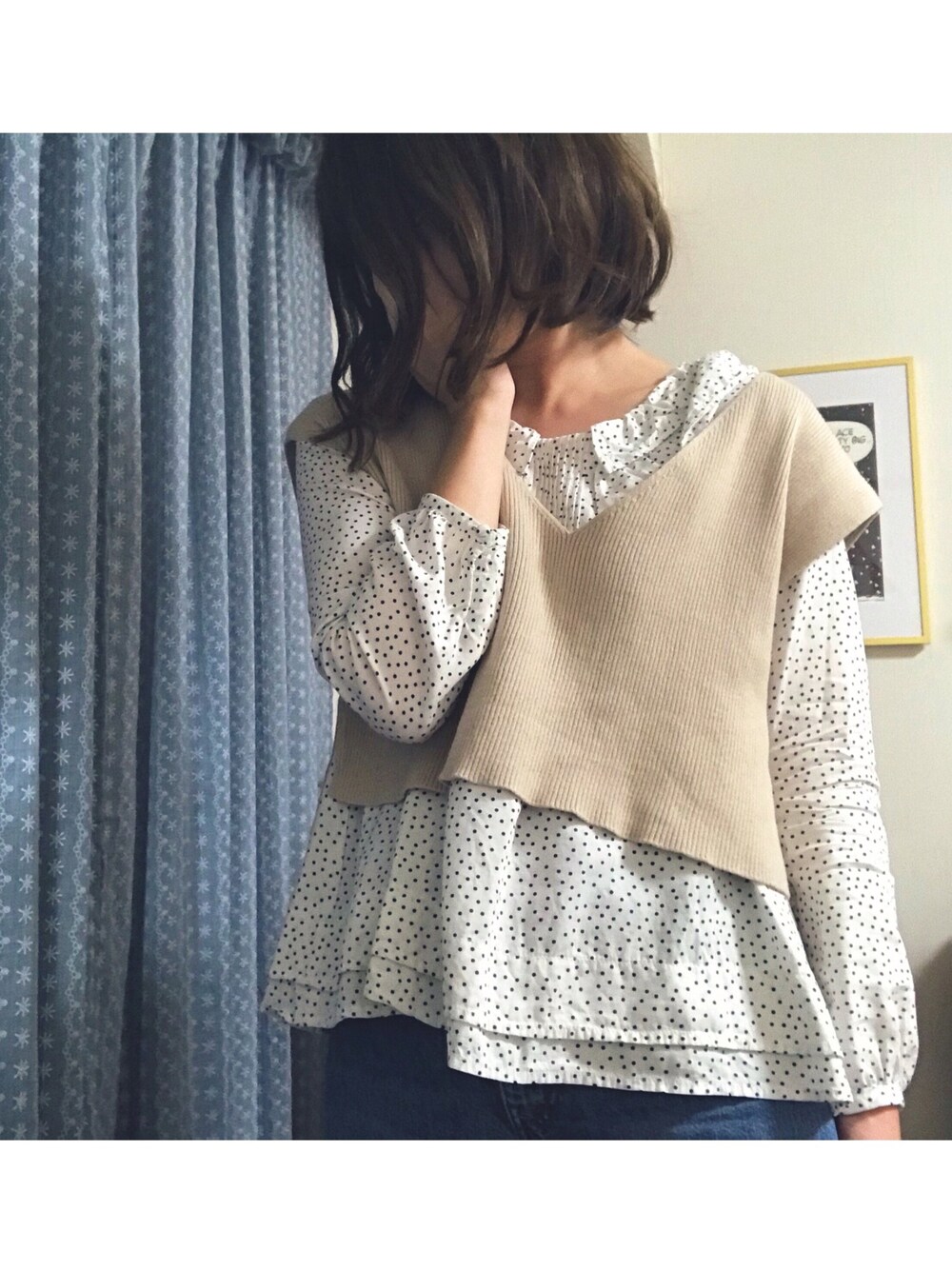 こんばんは。 着ているものは全て最近買ったものではないです。 柄物ブラウスにニットベストを合わせてみたら可愛くなったので載せてみました⚘ 明日はiPhone12 miniが届きます。 機種変の準備しなくちゃ! たのしみです。