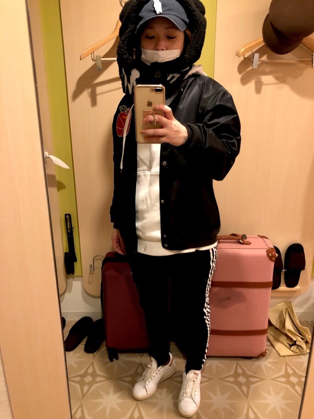 極寒のディズニーコーデです。 帽子の上にかぶってるのはディズニーのグッズです!これで外歩いてるわけではないですw