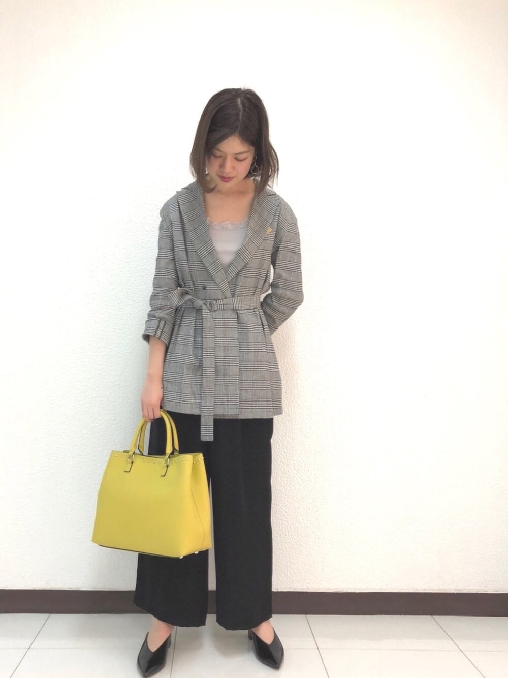 グレンチェックのアイテムは春も継続中 私もゲットしました☺️💕 ちょっと後ろに抜いてレースのインナーをちらりと。 ジャケットスタイルでも女らしく着たいです👔✨