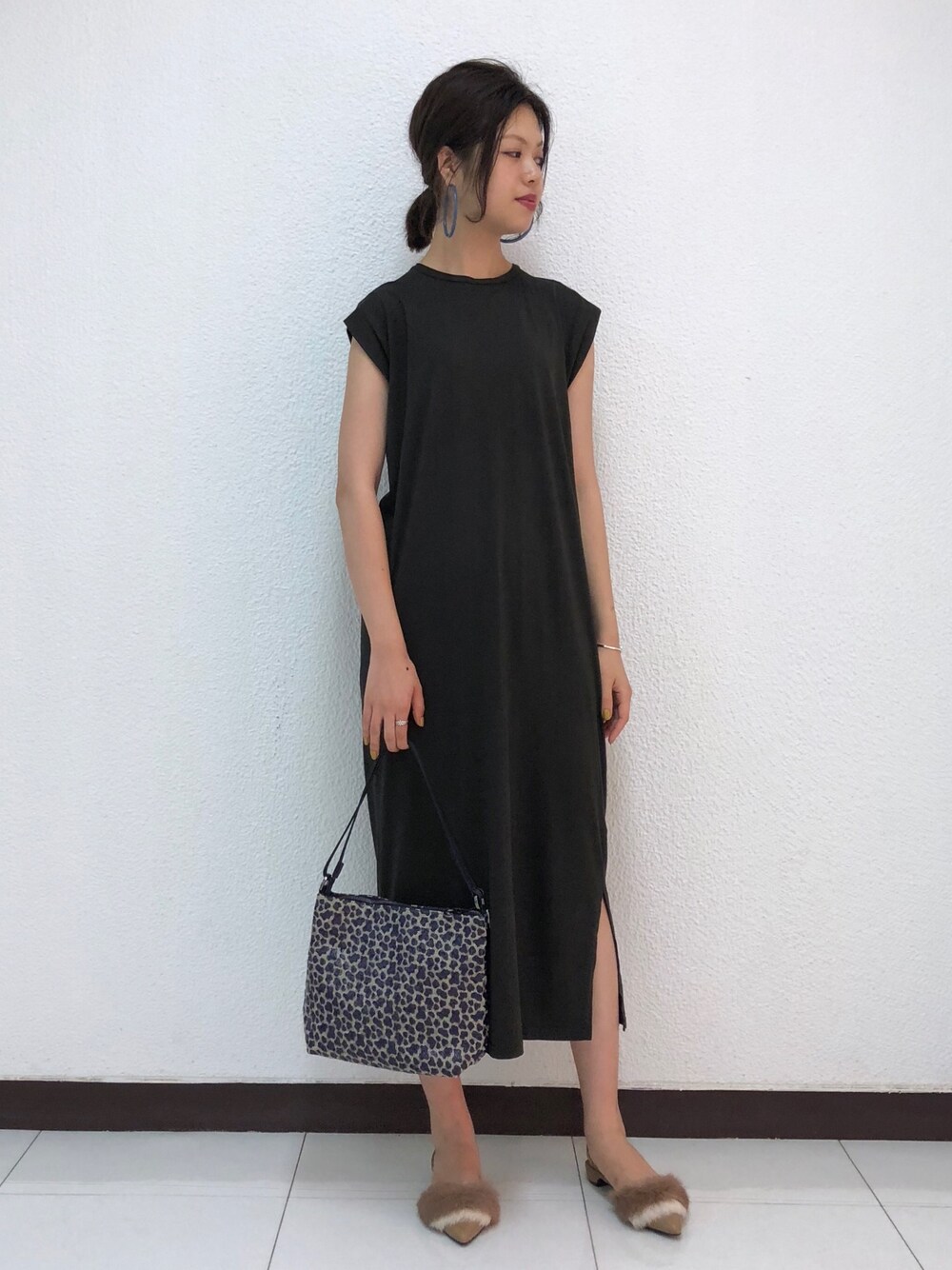 まゆ(RIVE DROITE ルミネ新宿)のワンピース「ベア天竺ロングクルーワンピース」を使ったコーディネート