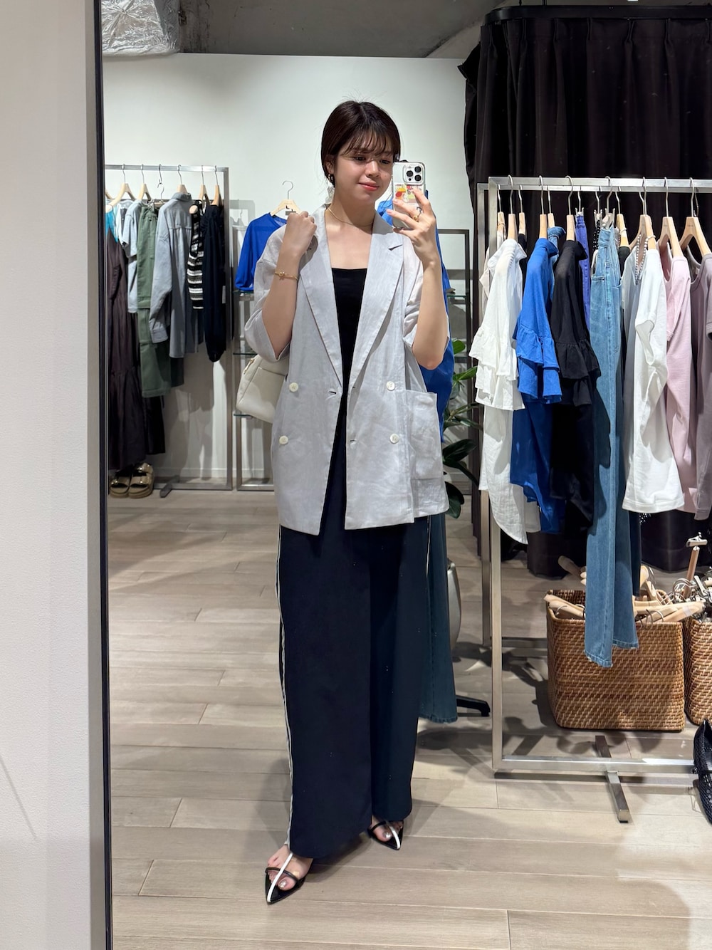 まゆ(RIVE DROITE ルミネ新宿)のテーラードジャケット「【程よい透け感が魅力】ラミーハーフスリーブジャケット」を使ったコーディネート