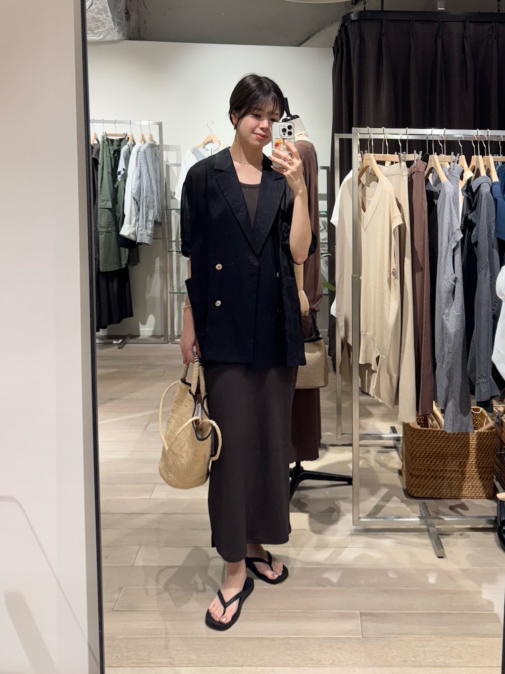まゆ(RIVE DROITE ルミネ新宿)のテーラードジャケット「【程よい透け感が魅力】ラミーハーフスリーブジャケット」を使ったコーディネート